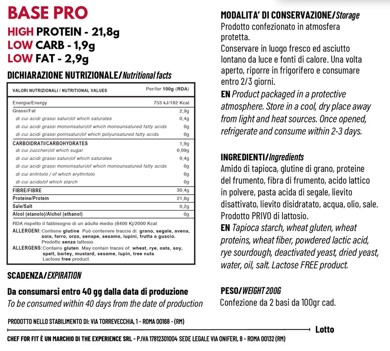 La nostra pinsa Chef for Fit è realizzata con una miscela di farine macinate a pietra, senza conservanti artificiali e con un apporto proteico elevato. A differenza della pinsa tradizionale, è low carb e ricca di fibre, il che la rende una scelta ideale per chi segue diete specifiche o per chi desidera mangiare in modo salutare.